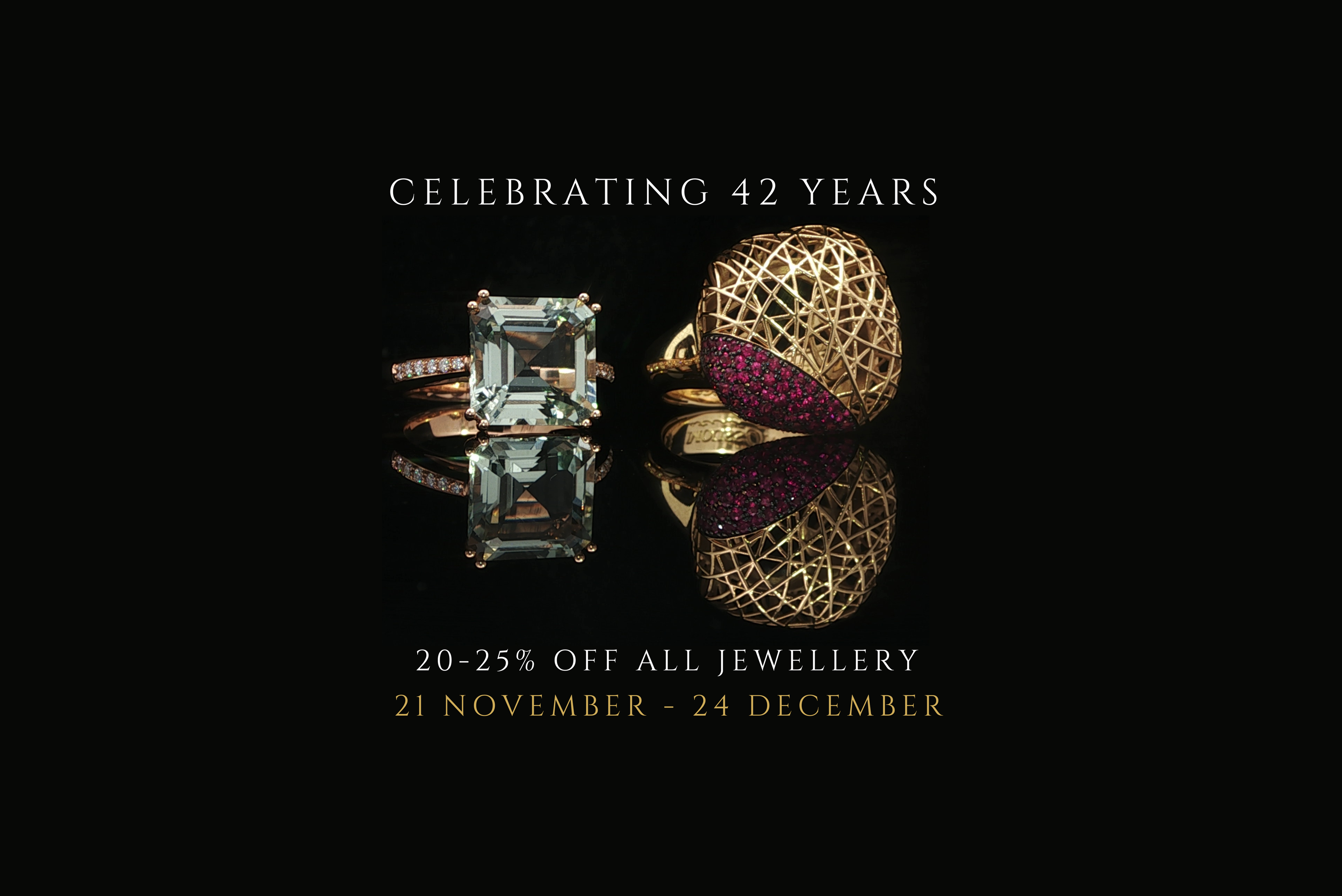 To celebrate 42 wonderful years on St Quentin Avenue, we’re offering 20–25% off all jewellery from now until Christmas Eve.