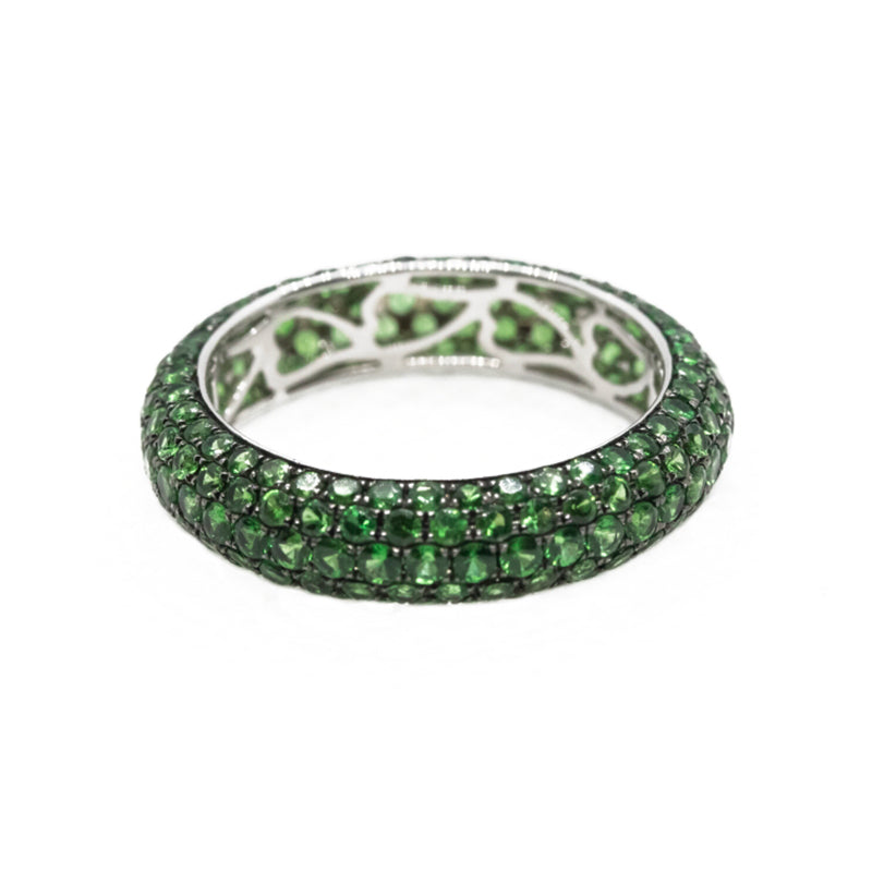 This beautiful tsavorite garnet band has been crafted in 18ct white gold. It has been set with 200 sparkling tsavorite garnets.
